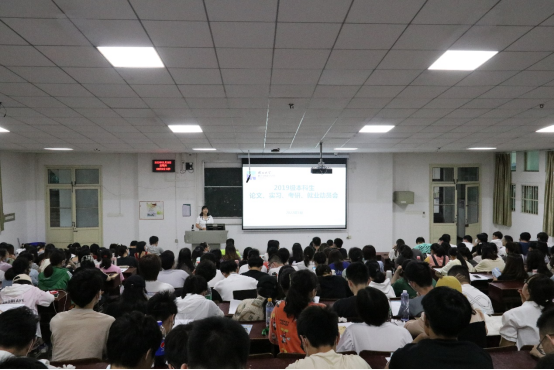 2022年5月26日,beat365官网登录中文于教三101召开2019级本科生考研、就业、实习动员会。数学与统计学公司党委副书记何肖、副经理向妮、各专业系部负责人及公司2019级全体员工参加了此次大会,大会由何肖主持。