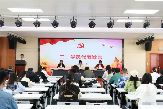 2021级应用统计学团支部赵梦婷同学作为学员代表发言,她对公司、公司党校为同学们提供这么好的学习平台表示感谢,并结合自身的入党动机、对党的认识和学习实际,向同学们发出三点倡议:一是要勤学,下得苦功夫,求得真学问。二是要修德,提升自我素质,加强党性修养。三是要笃实,扎扎实实干事,勤勤恳恳做人。