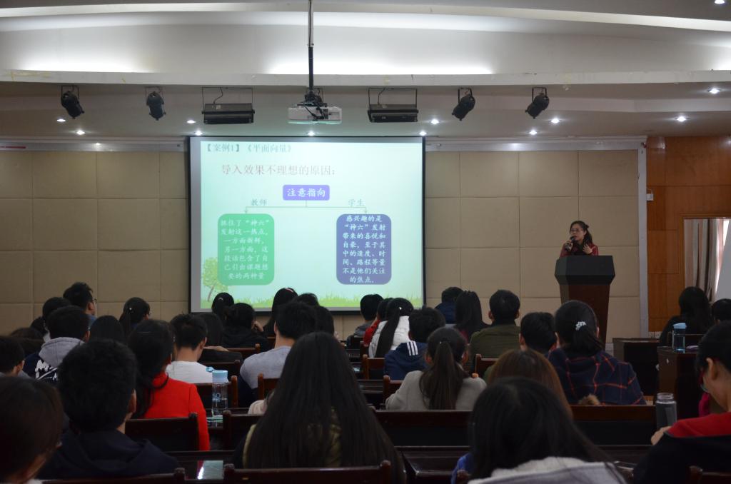 肖老师在此次报告中将重点放在了课堂导入这一阶段。肖老师首先运用多个实际而又生动活泼的案例为同学们展示了课堂导入的重要性,同时也指出课堂导入的“激趣”、“激欲”、“扣题”、“统摄”四个目的。之后肖老师又强调了课堂导入的注意事项,即服务于教学目标、服从于教学内容、符合于员工实际、受制于课程需要。